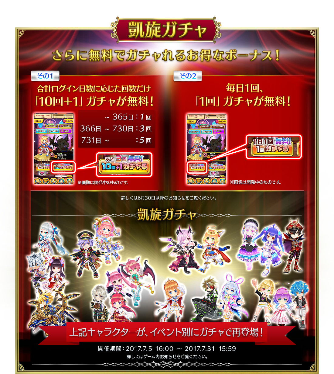 - 今日は凱旋ガチャ武器ガチャ1日一回無料ガチャと神気があるのでそれ以外は何卒